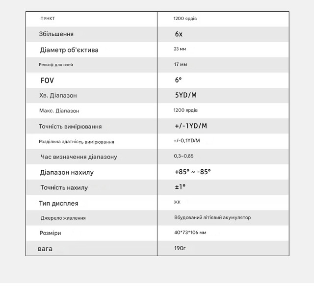Лазерний далекомір Artbull LP-1200 з виміром до 1200 м з кутоміром.